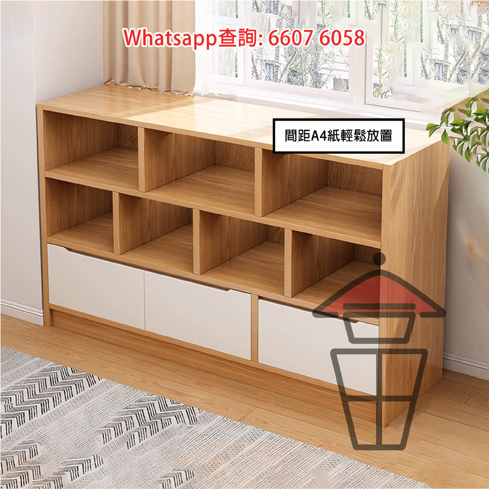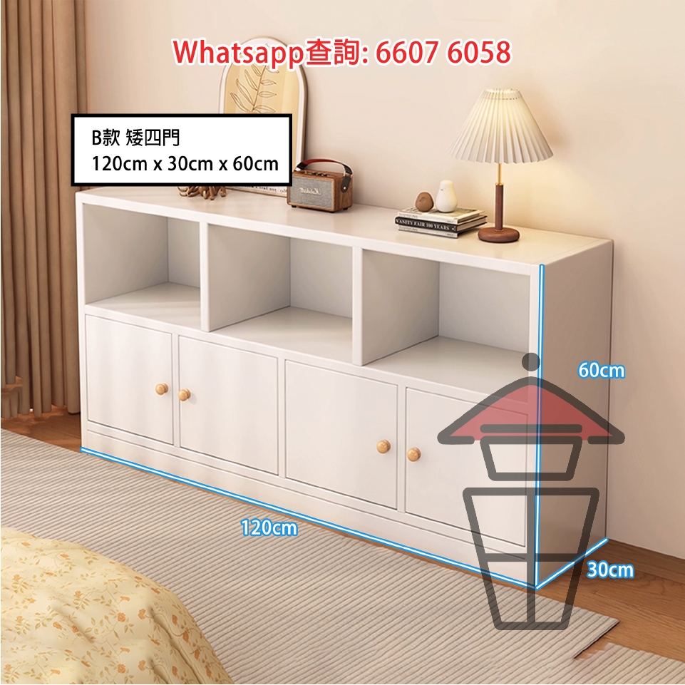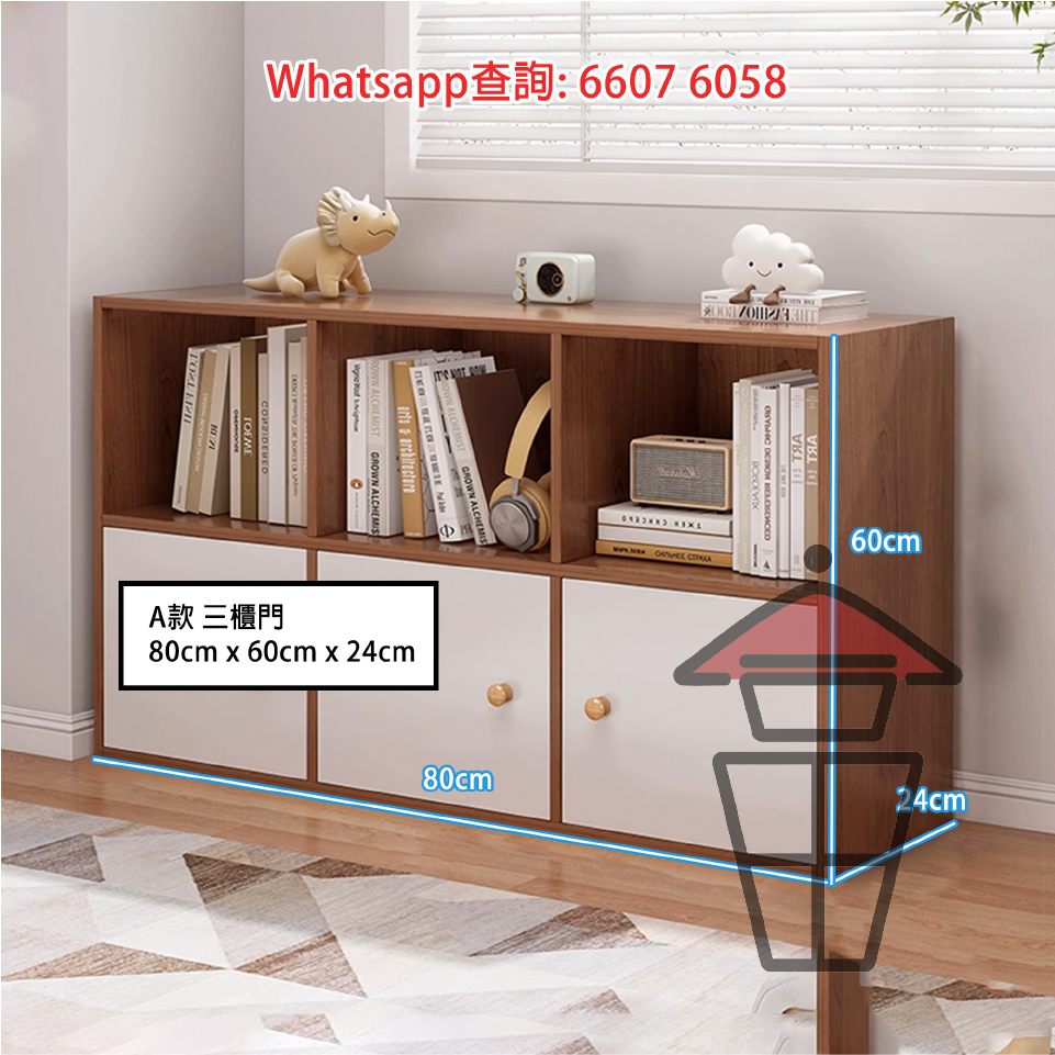 CB16-B 簡約座地木書櫃 [矮四門] Classic Wooden Cabinet Bookshelf 底層掩門 置物企理 帶背板 加插中間板