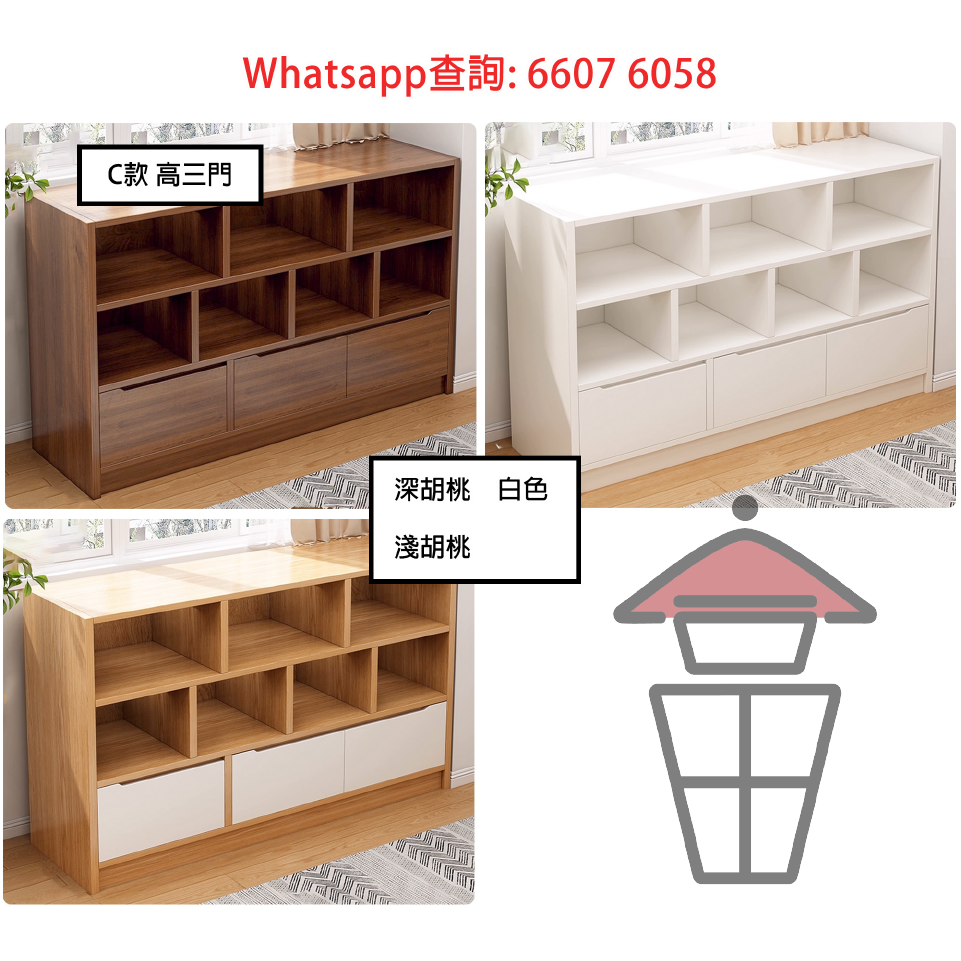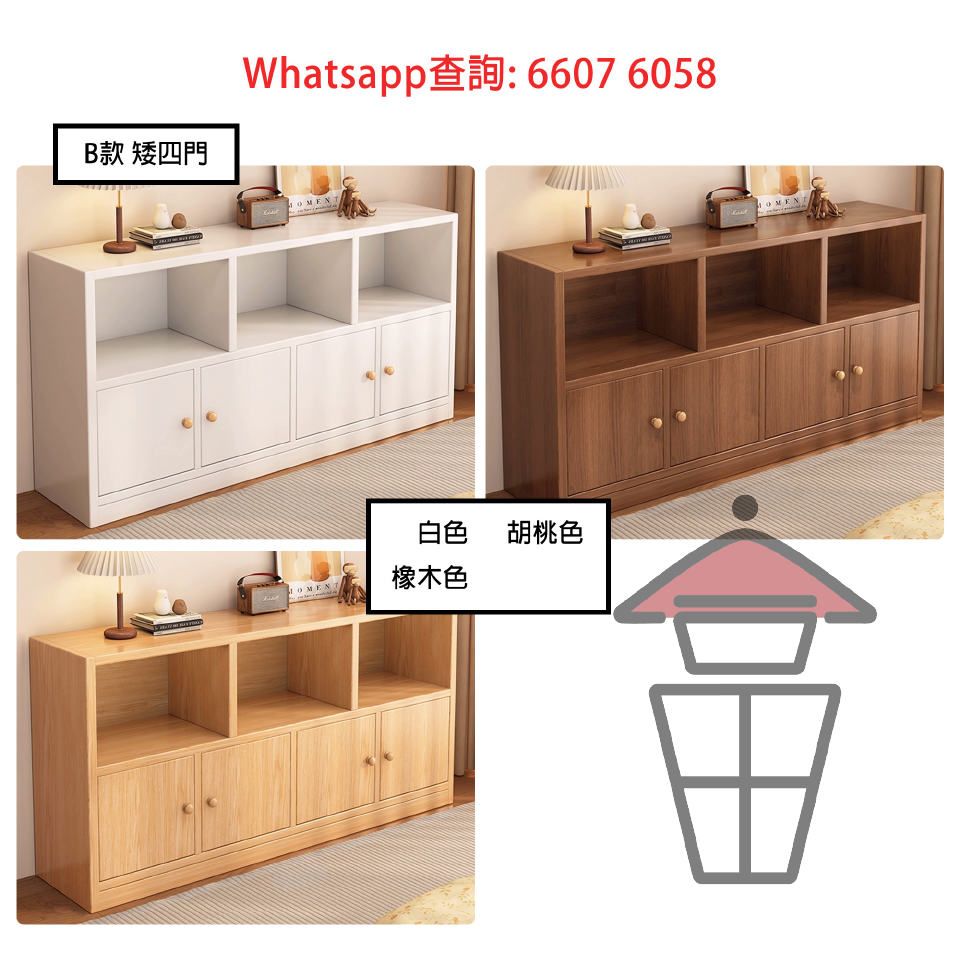 B款 矮四門 白色/ 橡木色/ 深胡桃色