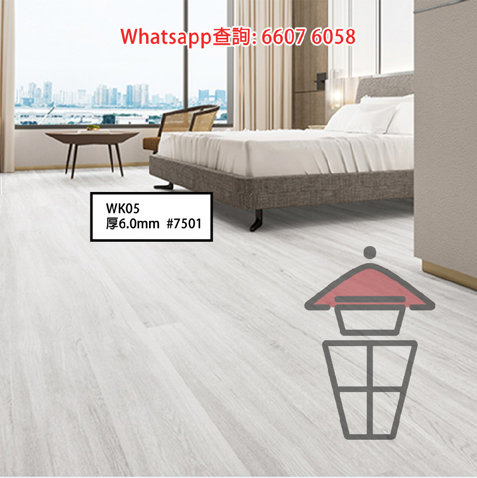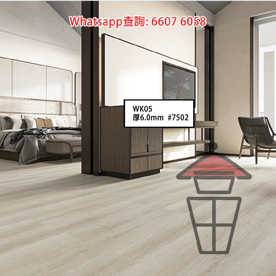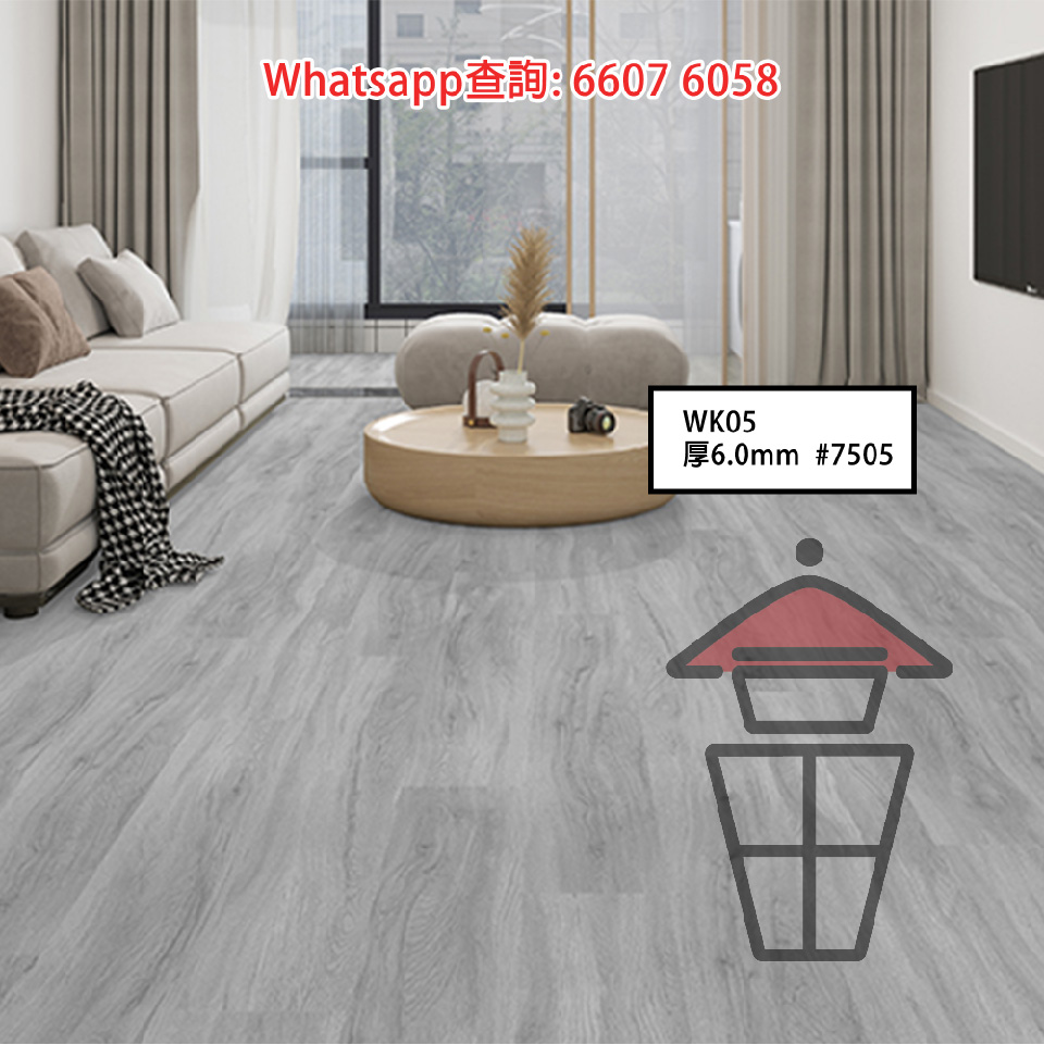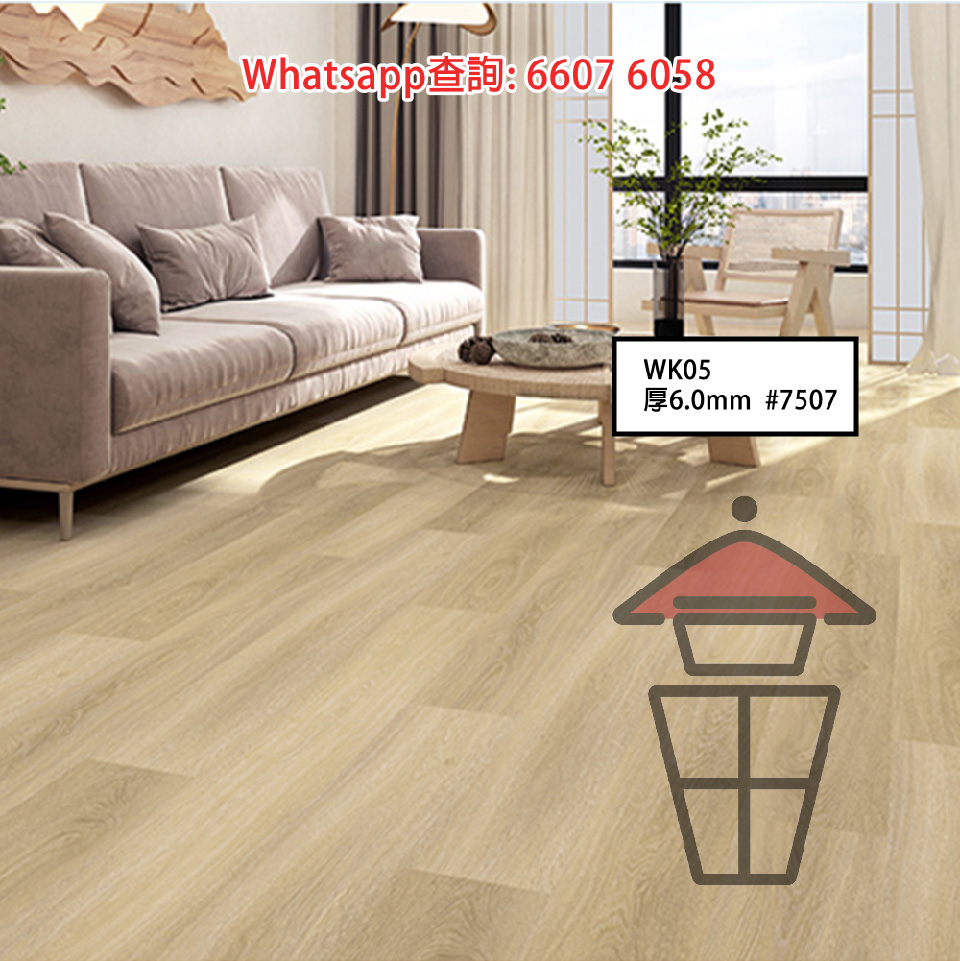 WK05-A 石塑 SPC 仿木紋卡扣環保地板 厚6mm Stone Plastic Composite Flooring 防火防水耐磨靜音
